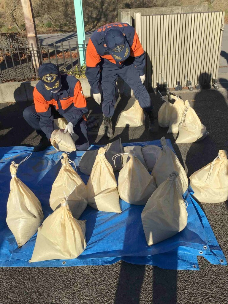 避難訓練のあとには土嚢の積み方や消火についてもご指導いただきました。
